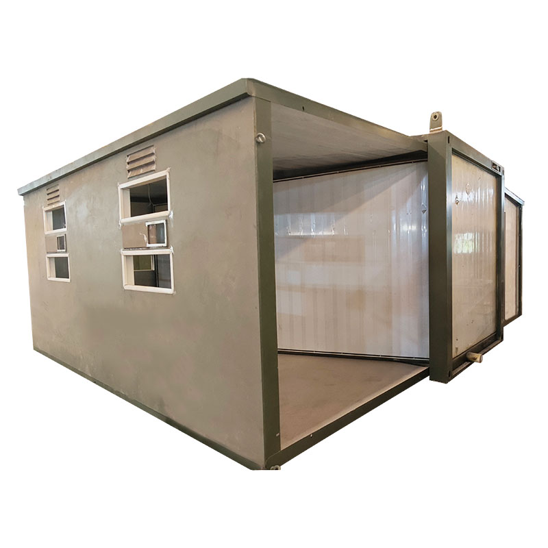 Prefabricated Double Wing Expansion House သည် အများအားဖြင့် အပြန်အလှန်ချိတ်ဆက်ထားသော တောင်ပံနှစ်ခုဖြင့် ဖွဲ့စည်းထားသော ခေါက်နိုင်သော လက္ခဏာများရှိသော အဆောက်အအုံဖြစ်သည်။ ဤအိမ်ရာဖွဲ့စည်းပုံသည် သိုလှောင်မှုနှင့် သယ်ယူပို့ဆောင်ရေးအတွက် အလွယ်တကူ ခေါက်သိမ်းနိုင်သည်။